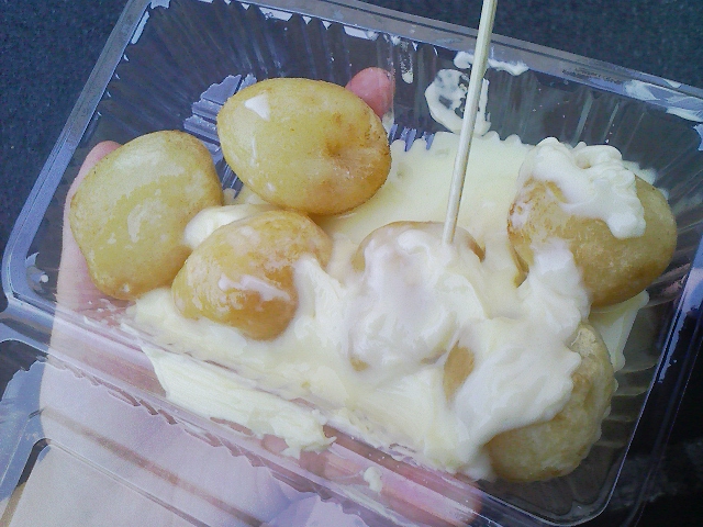 じゃがバターを食べました。小さい芋を揚げるタイプ。なかなか見ないタイプです。おいしかった。
