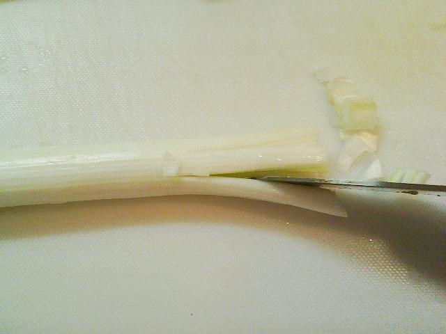 まずはネギを切ります。自分はネギが大好きなので多めに入れます。