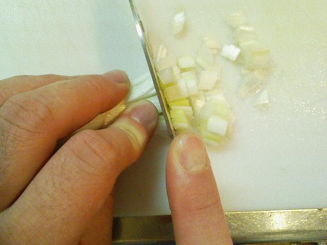 んでもって、横から包丁を入れれば、ハイッ!ちょうどいいネギのみじん切りだよ。