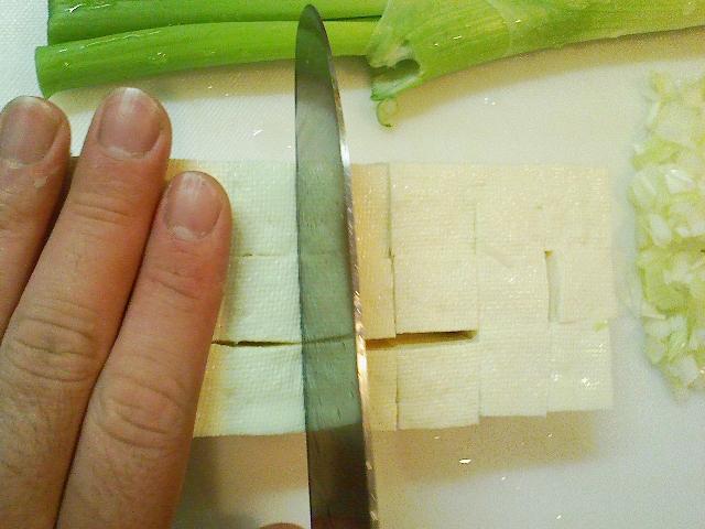豆腐は、1.5cm角くらいに切れば良いでしょう。
