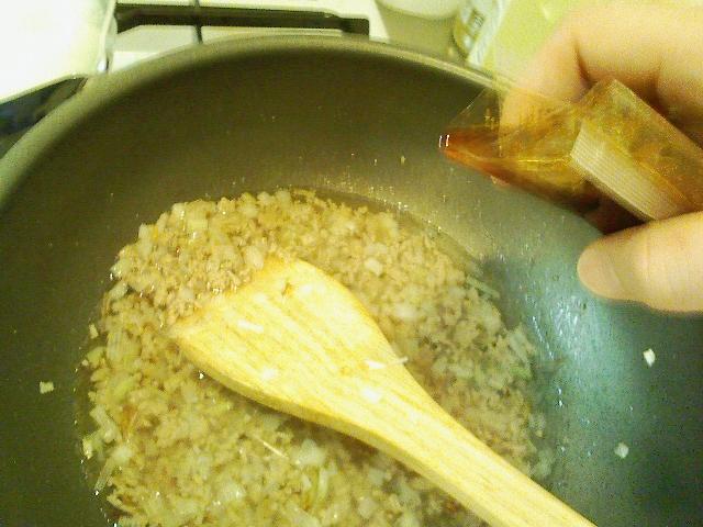 ひき肉は、透明な油が出るまで中火でしっかり炒めましょう。