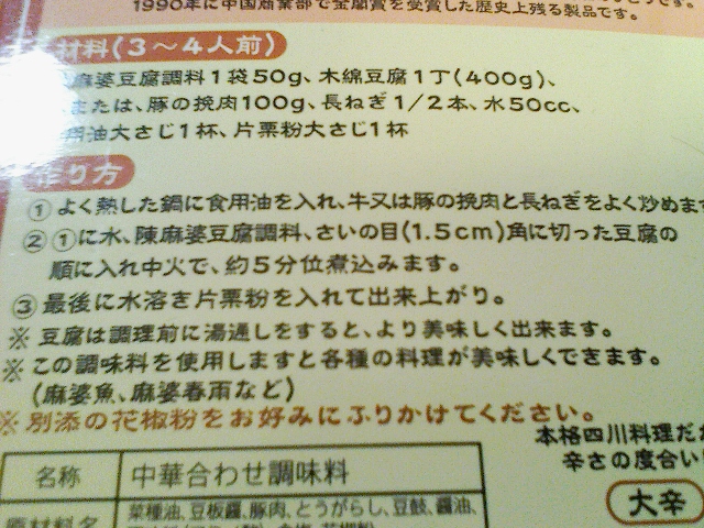 に行き、 「世の中、こんなおいしい麻婆豆腐があるんだな~。」と感動を覚え、レシピを確認しては何回も調理に挑戦しました。